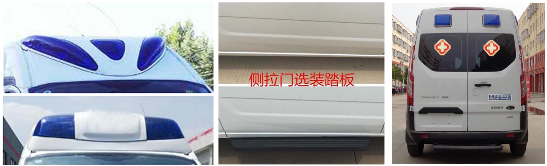 該車配備醫(yī)療器械柜,氧氣瓶,擔架,消毒燈救護專用設備。選裝左側(cè)右側(cè)以及前面報閃燈,選裝頂部換氣扇,選裝側(cè)拉門踏板,選裝前窗上部報警器時整車高(mm);2407;選裝不同風格的警燈.ABS系統(tǒng)控制器型號:EV5051,生產(chǎn)廠:博世汽車部件(蘇州)有限公司,選用輪胎:215/75R16LT,層級:8PR,10PR,12PR。