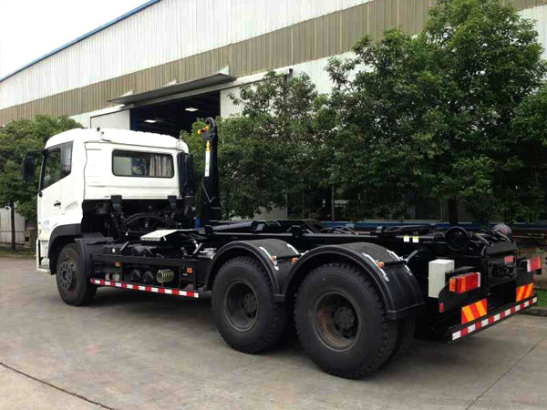 組成部分:國內知名品牌東風原裝底盤(全國聯保)、垃圾箱、取力器、多路換向閥、拉臂、液壓系統、操作系統等組成。(舉升油缸及鎖緊油缸系我廠自行研發生產的雙作用油缸。)