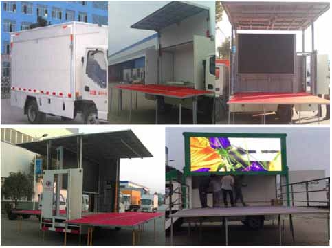 該車是進行舞臺文藝表演的專用車輛。車輛顏色可選;文字噴涂位置可變化。車廂頂棚封閉,并采用衍架結(jié)構(gòu),可升降,車廂兩側(cè)板可選裝液壓展開,與頂棚形成整車舞臺頂棚;活動舞臺板可折疊于車廂內(nèi),通過展開裝置展后與固定舞臺臺面形成整車舞臺臺面; 可根據(jù)用戶要求選裝導流罩,頂板延伸遮陽板;選裝左右LED屏舉升或不舉升,選裝廣告燈箱或者條屏,選裝后部雙開門或者左單開門或者右單開門,后部可選裝液壓升降尾板;底盤大梁部分選裝支撐裝置。防護材料:Q235A碳鋼,連接方式:左右側(cè)面及后下部防護均采用焊接連接,后部防護斷面尺寸(mm):100?0,后部防護離地高度(mm):430。ABS控制器型號及生產(chǎn)企業(yè):CM4XL-4S/4M,廣州科密汽車電子控制技術(shù)股份有限公司;