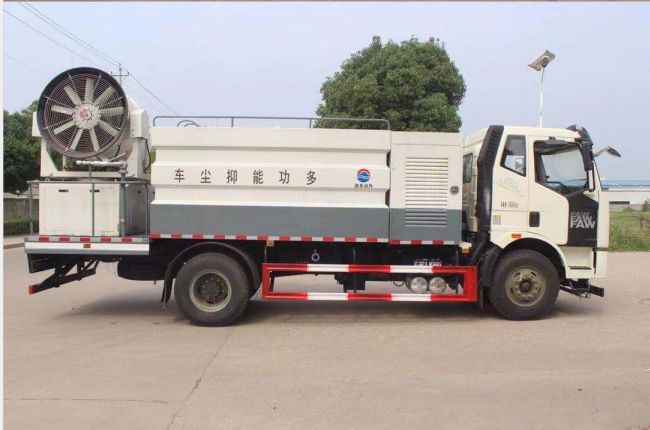 國六解放12方噴霧抑塵車,噴霧抑塵車又稱:多功能抑塵車、降塵車、霧炮車、空氣凈化車。主要是在灑水車的基礎(chǔ)上,增加了遠(yuǎn)距離噴霧抑塵系統(tǒng),對(duì)治理工業(yè)粉塵污染、汽車尾氣、秸稈燃燒等產(chǎn)生在空氣中的細(xì)小懸浮顆粒有顯著的效果,被人們成為“治霾神器”。多功能抑塵車主要作用是噴霧抑塵,同時(shí)具備灑水和道路沖洗功能,還可進(jìn)行工地降塵、環(huán)保除塵、空氣凈化等作業(yè)。風(fēng)送式噴霧大炮可達(dá)30-120米不等,霧炮筒可360°旋轉(zhuǎn),可遙控操作。操控方便,移動(dòng)靈活。