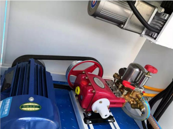 噴霧抑塵車隨車裝配大功率柴油機、三相交流同步發(fā)電機、三相異步電動機、三缸活塞泵,并安裝風機風炮,為農(nóng)藥噴灑提供專一動力來源和專用設備。灑水泵可抽水排水,安裝濾網(wǎng),帶消防接口,可通過消防栓進水,帶自流閥,隨車選裝20米噴藥綠化卷盤
