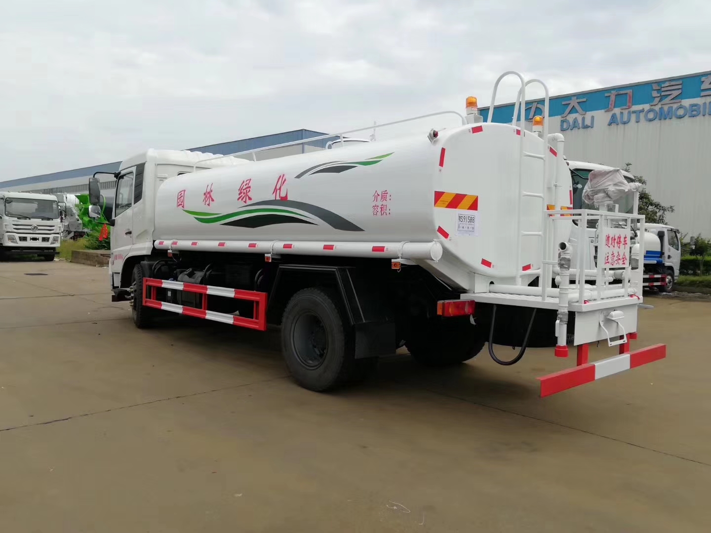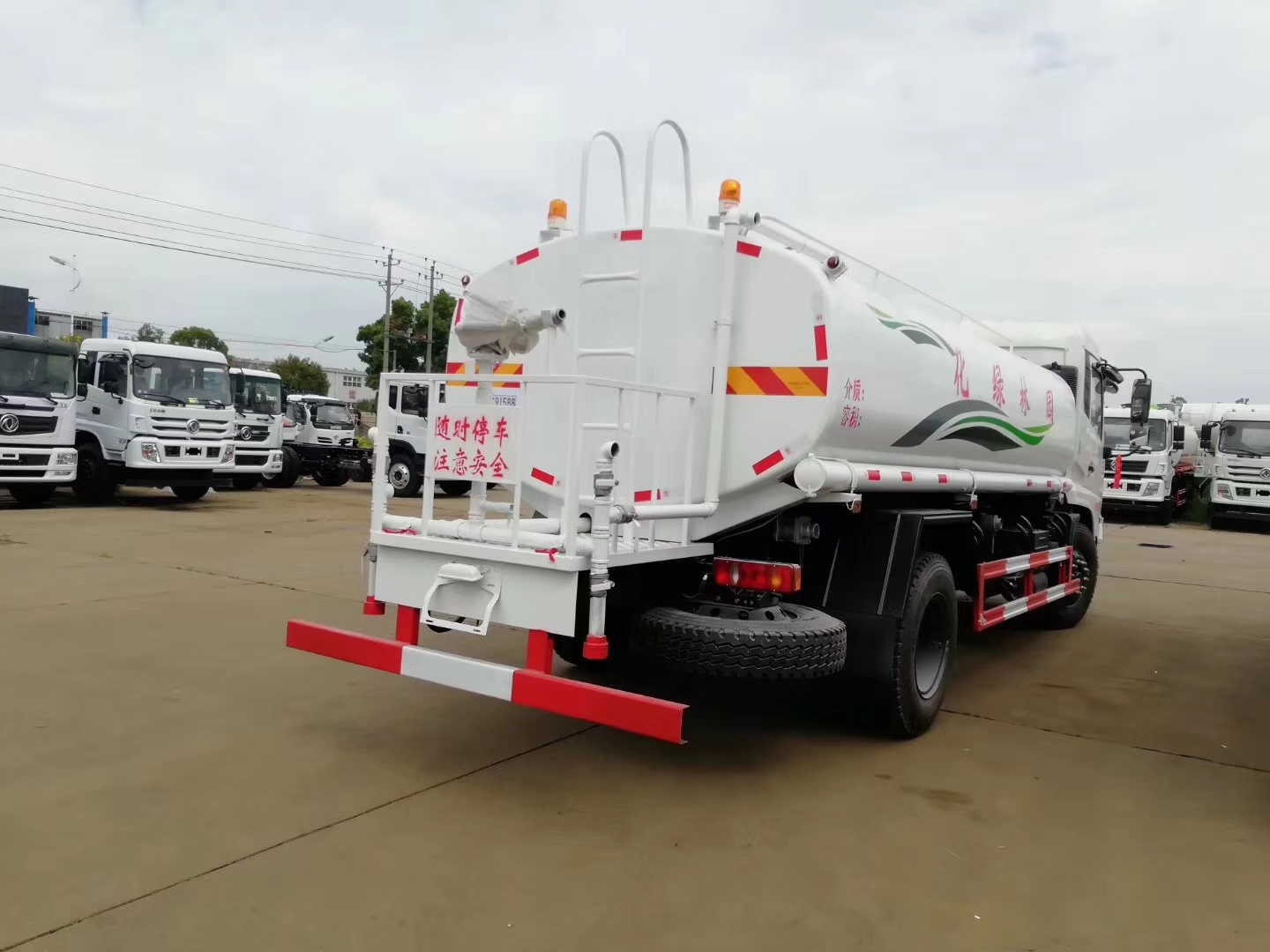 東風(fēng)天錦12噸灑水車水罐上裝配置:罐體容積可依據(jù)車輛公告制作灑水車,廠家標(biāo)準(zhǔn)罐體鋼板為4mm厚碳鋼Q235材質(zhì)(用戶也可選用不銹鋼板材),罐內(nèi)隔板具有防波作用,以減輕汽車行駛時罐體液體沖擊,罐體及整車外形尺寸按照公告。帶大功率專用灑水泵,可自吸自排,整車前沖、后灑、側(cè)噴、帶65消防接口,后平臺帶綠化灑水炮,灑水炮可全方位旋轉(zhuǎn),可連續(xù)調(diào)成直沖狀、大雨、小雨、毛雨;前封頭帶水位計,后平臺主管路帶1付澆花接口,后爬梯。平臺后部帶小安全告知牌:“隨時停車,注意安全”,帶兩根水管及陰陽端。罐體顏色:上白下藍(lán),銀灰/銀藍(lán),罐體兩側(cè)噴“灑水車、綠化噴灑車”字樣,貼反光標(biāo)示。灑水車可加裝前沖后灑氣動閥駕駛室控制、可加裝霧炮機(jī)組發(fā)電機(jī)組噴霧降塵裝置、車頭可加裝推雪雪鏟、雪滾裝置街道、公路除雪等。